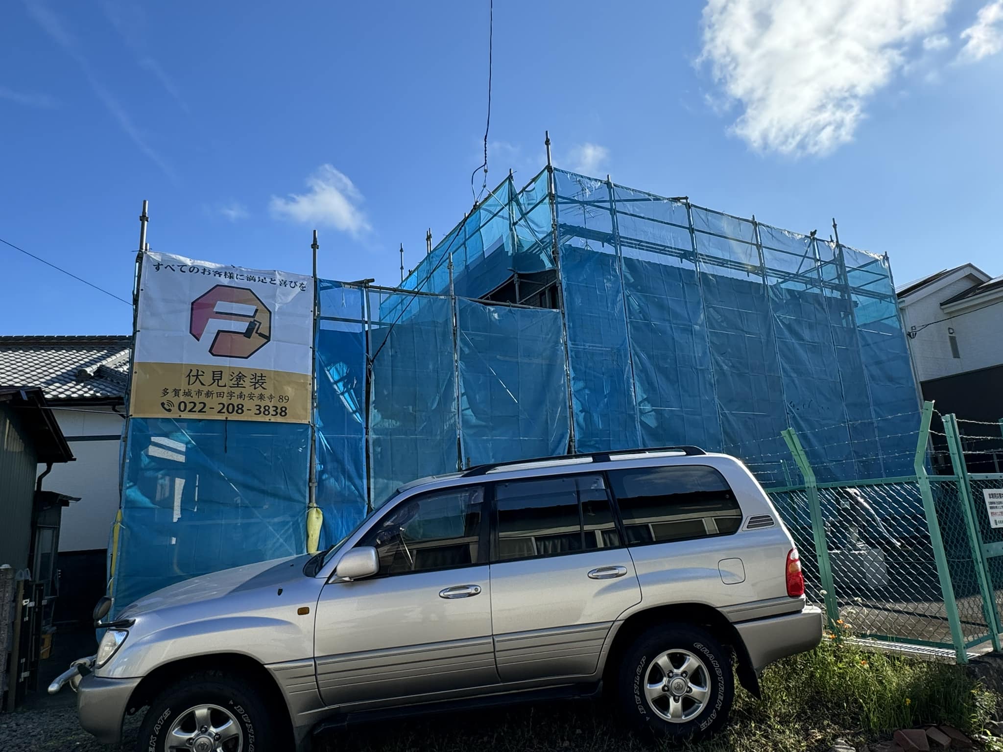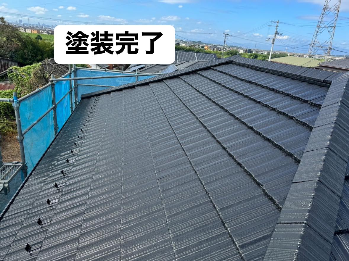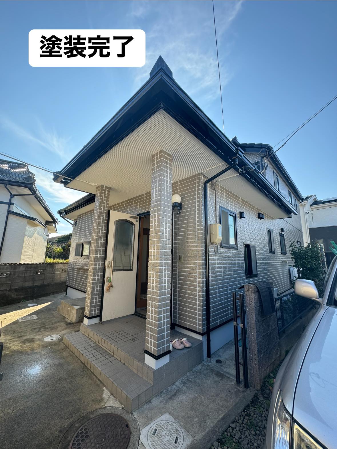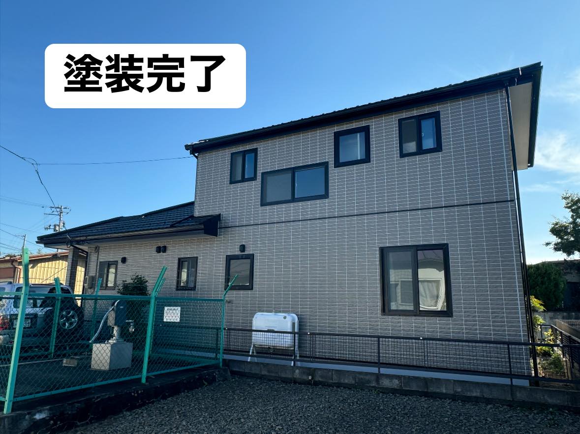 多賀城市新田S様邸の塗装工事完了写真です。屋根は痛みが激しく5度塗り、外壁はタイル調に仕上げました。
