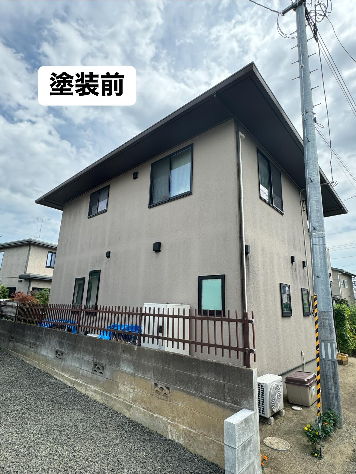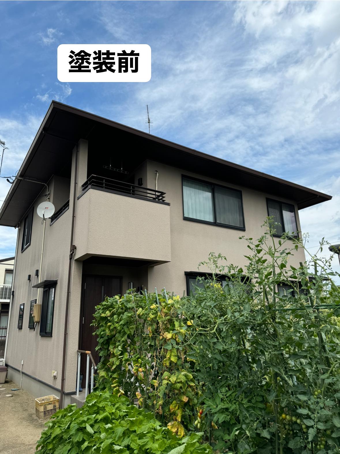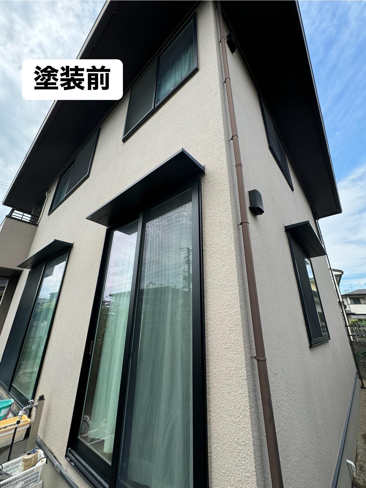 | 施工内容 | 住友林業様のお宅です。屋根はコロニアルのため、下塗りでファイン浸透造膜シーラーで吸い込みを止め2回塗り、上塗りで無機塗料のファインパーフェクトベストを2回塗り計4度塗りいたしました。痛みの激しい南面は5度塗りです。外壁も無機塗料をお選びいただきグランセラトップで仕上げました。 |