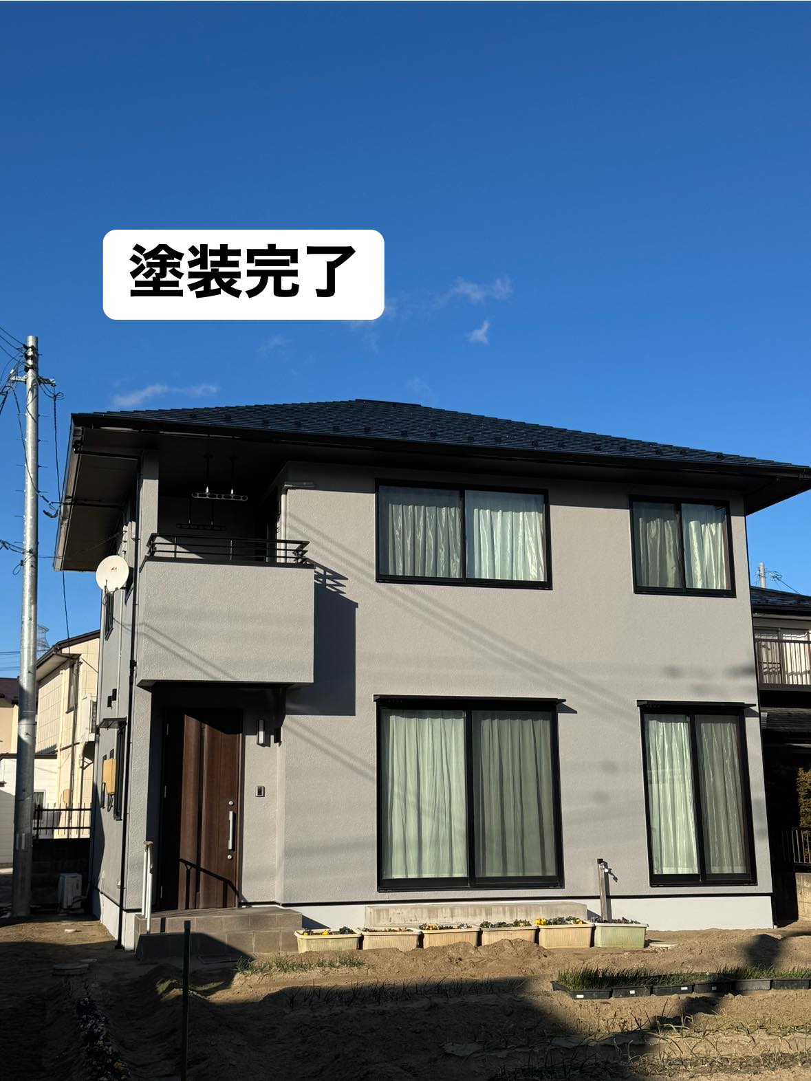外壁も屋根も無機塗料でモダンな落ち着いた雰囲気に|多賀城市S様邸