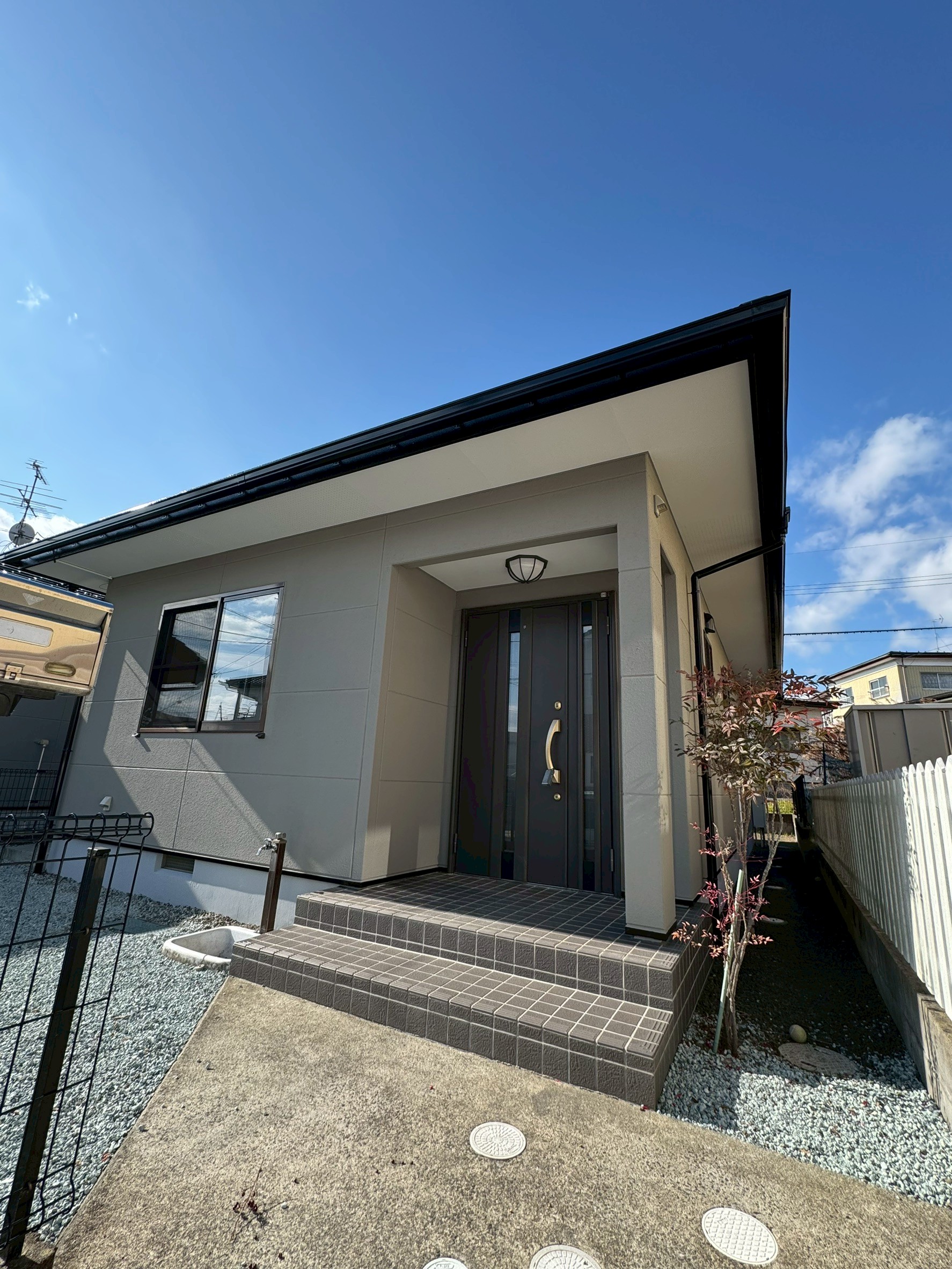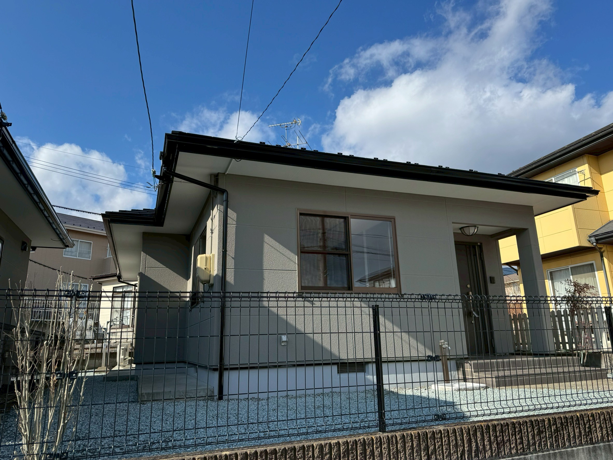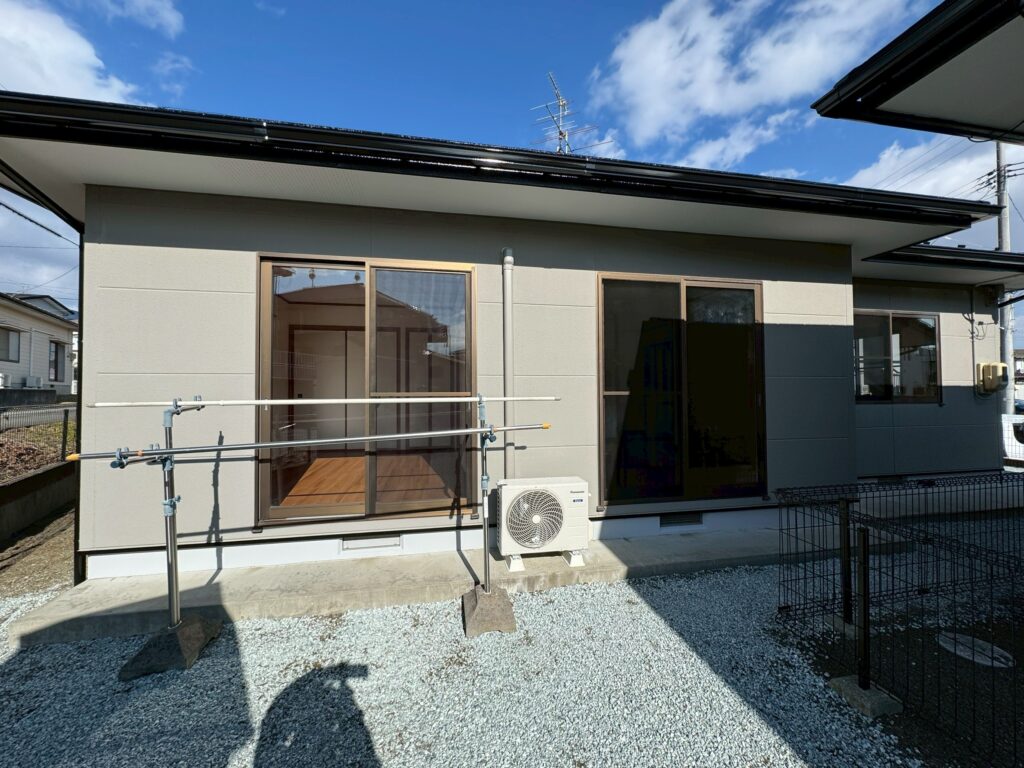 202411利府町S様貸家|シリコン塗料で屋根はツヤツヤで、外壁は落ち着いた仕上がりになった