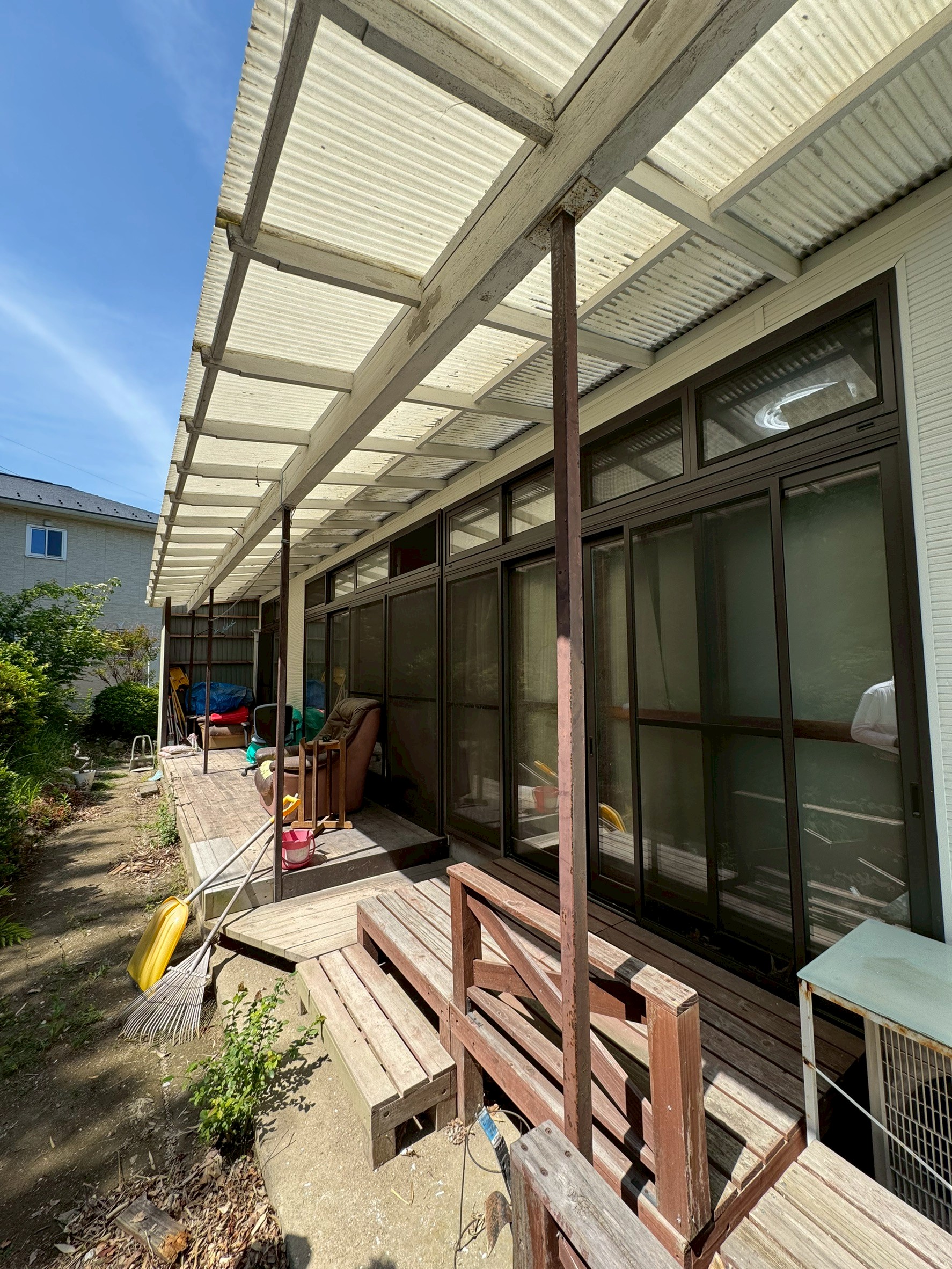 | 施工内容 | ウッドデッキの塗装 ウッドデッキのポリカ張り替え |