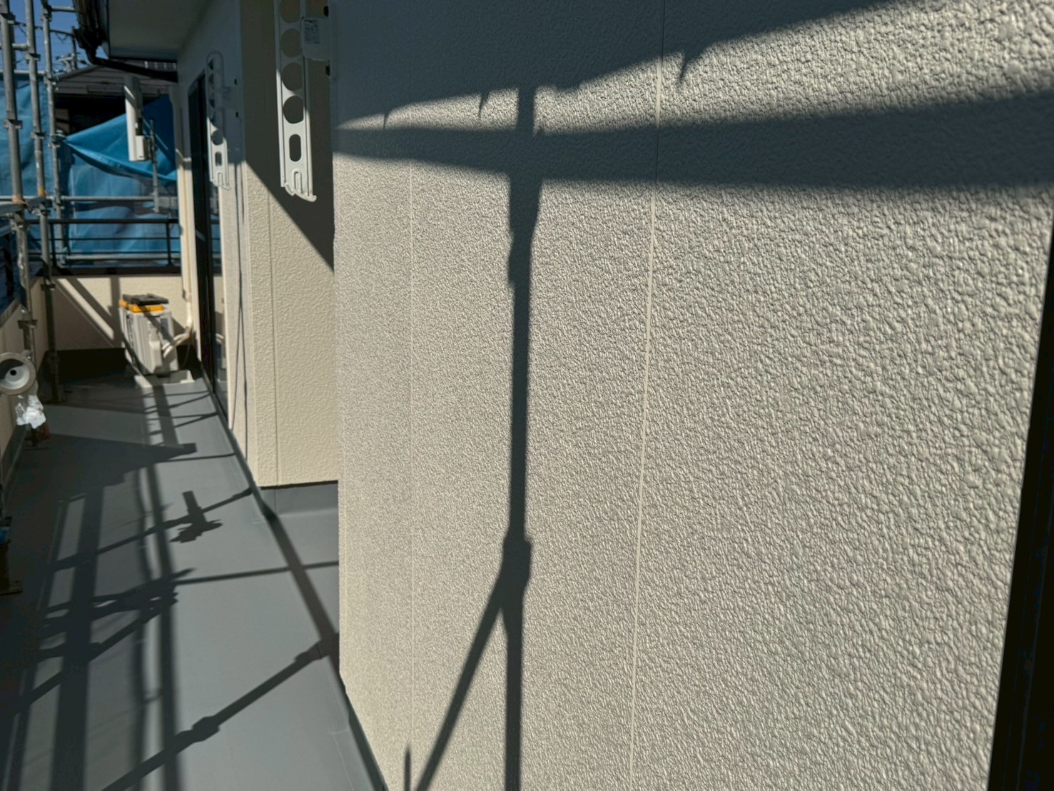 | 塗料(色) | 屋根:無機塗料・グランセラベスト 2液ファイン(コーヒーブラウン) 外壁:無機塗料・グランセラトップ2液水性(1階ND-342、2階ND-104) 雨樋:グランセラベスト 2液ファイン(コーヒーブラウン) 破風板:グランセラベスト 2液ファイン(コーヒーブラウン) 軒天:ケンエースG-II(白) バルコニー防水:シートトップ#100(フォックスグレー) |