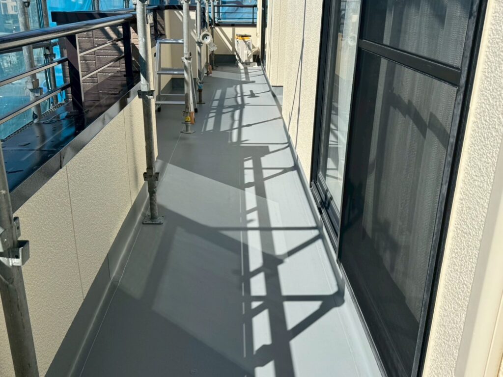 多賀城市新田のI様邸において、屋根と外壁の塗装工事のほか、バルコニー防水工事、屋根のアンテナの壁への付け替え、エアコン4台の取り付け、玄関の電灯交換、インターフォン交換、網戸張り替えを行いました。
